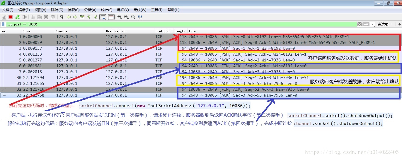 之前一直没弄明白我使用JAVA API进行socket编程的时候,到底调用哪个API的时候,TCP底层进行了3次握手,调用哪个API的时候,TCP底层进行了4次握手。网上查阅一番资料后没找到想要的,于是自己利用周末时间搞搞明白,记录一下,下次好查阅!